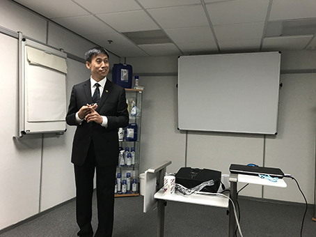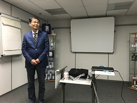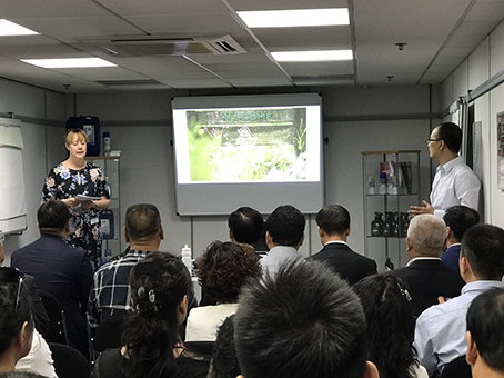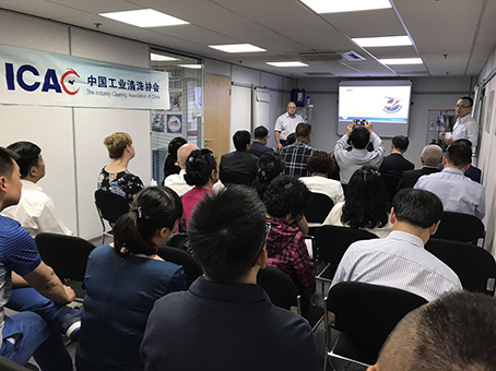 工業清洗劑事業部總監喬納森·雷為大家介紹了所有ARROW公司服務的領域、清潔對象、清洗劑種類和制造工藝等。ARROW公司的中國區銷售總監周伯陽作為本次活動的翻譯,并介紹了ARROW公司在中國的市場開發情況。