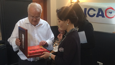 ARROW公司董事長托尼·布瑞利對大家的到訪表示熱烈歡迎,也同馬春玲副秘書長互贈了禮物。