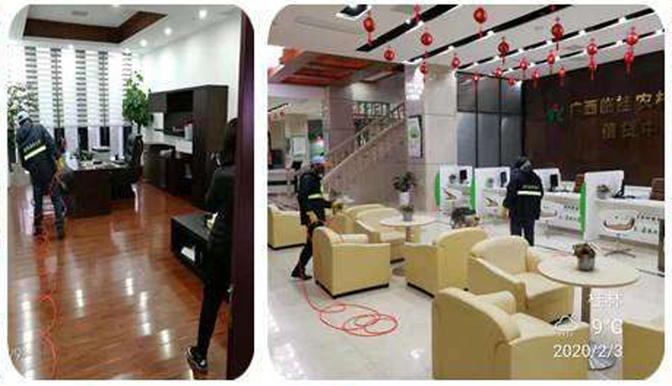 桂林潔凈壹百環保公司積極配合廣西臨桂農商行積極做好新型冠狀病毒防控工作,為廣大員工和人民群眾提供一個安全、衛生的金融服務場所。2月3日下午5時桂林潔凈壹百環保公司施工人員克服多日來連續奮戰的辛勞,及時進駐該行總行大樓進行環境殺毒滅菌施工并加班加點到晚上順利完成消殺施工作業。